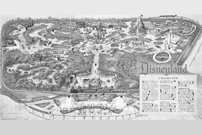 Disneyland Park Map Poster Black and White Poster 24x36